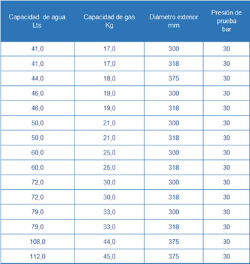 Nuestra línea de industrial tiene capacidades de 41 Lts a 112 Lts con presión de prueba de 30 bar y diámetros de 300 mm, 318 mm y 375 mm. Son una solución confiable durante el transporte y almacenamiento de gas, que garantizan su disponibilidad en casi todas las condiciones. Son una alternativa para los tanques de uso doméstico.
